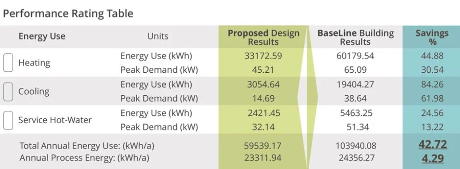 Funksionet e Vlerësimit të Performancës në EcoDesigner STAR ndihmojnë arkitektët për të krahasuar alternativat e energjisë efiçiente gjatë projektimit. Përveç kësaj për të qenë në përputhje me ASHRAE 90.1 2007, (Shtojca G: Metoda e Vlerësimit të Performancës) specifikimet standarde siç referohen nga USGBC LEED Energy 2007, metoda e gjenerimit të ndërtesës referuese bazë nga programi, ofron një shkallë të madhe të lirisë që t'i përshtatet poashtu edhe rregulloreve tjera për vlerësimin e performancës.