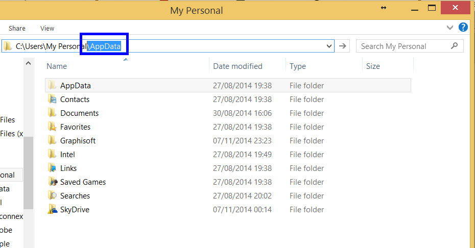AppData, kryesisht është follder që nuk shfaqet në explorer, sepse e ka parametrin HIDDEN të aktivizuar, mirëpo shenoni manualisht "\AppData"